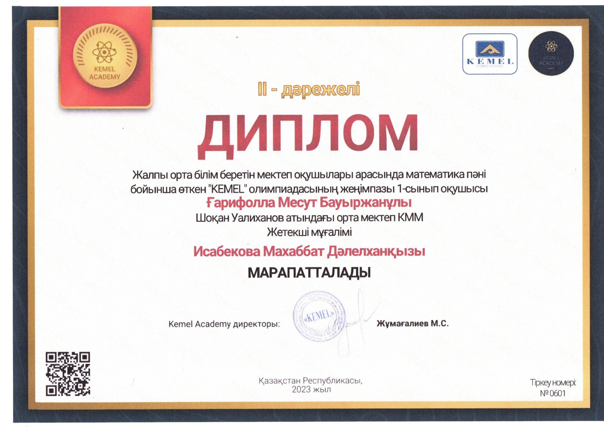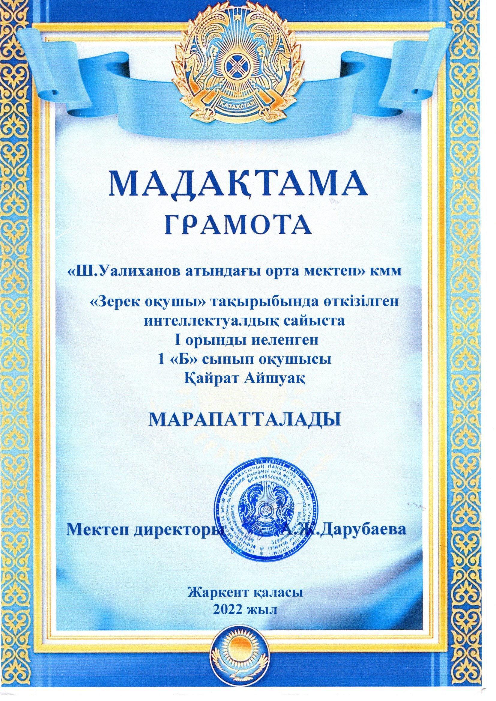 Исабекова Махаббат » Ш.Уәлиханов атындағы орта мектебі